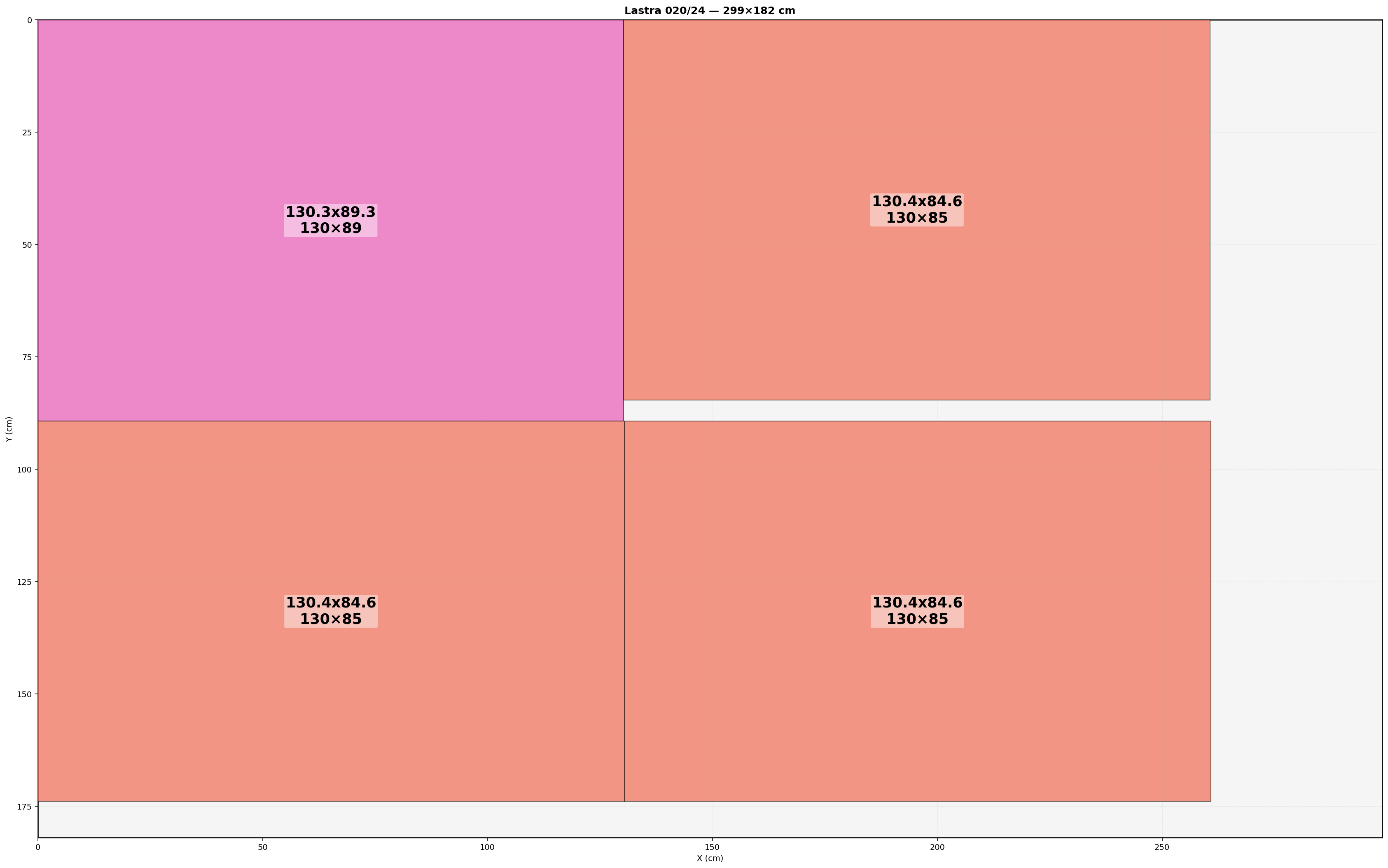 Lastre: 24 | Utilizzo: 75.97% | Waste area: 313854 cm^2